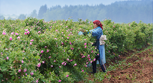 “バラの谷”が最も活気づくのは、5月下旬から6月上旬。1年に1度のバラの収穫時期です。山の端が白み始め、朝もやが立ち上る夜明け前、一斉にバラ摘みが始まります。
